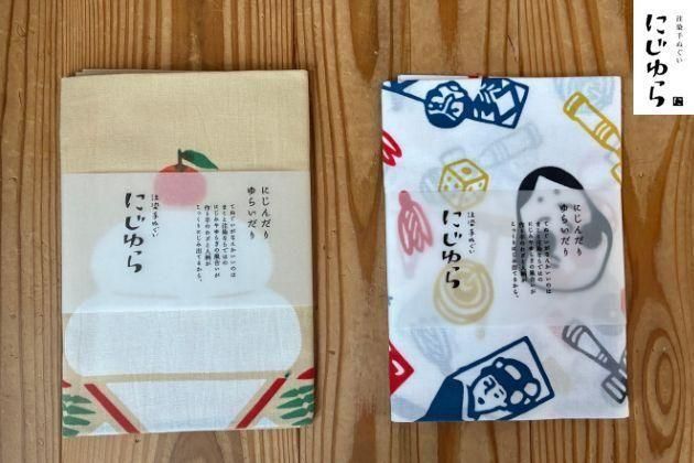 にじゆら 手ぬぐい|鏡餅・初遊び